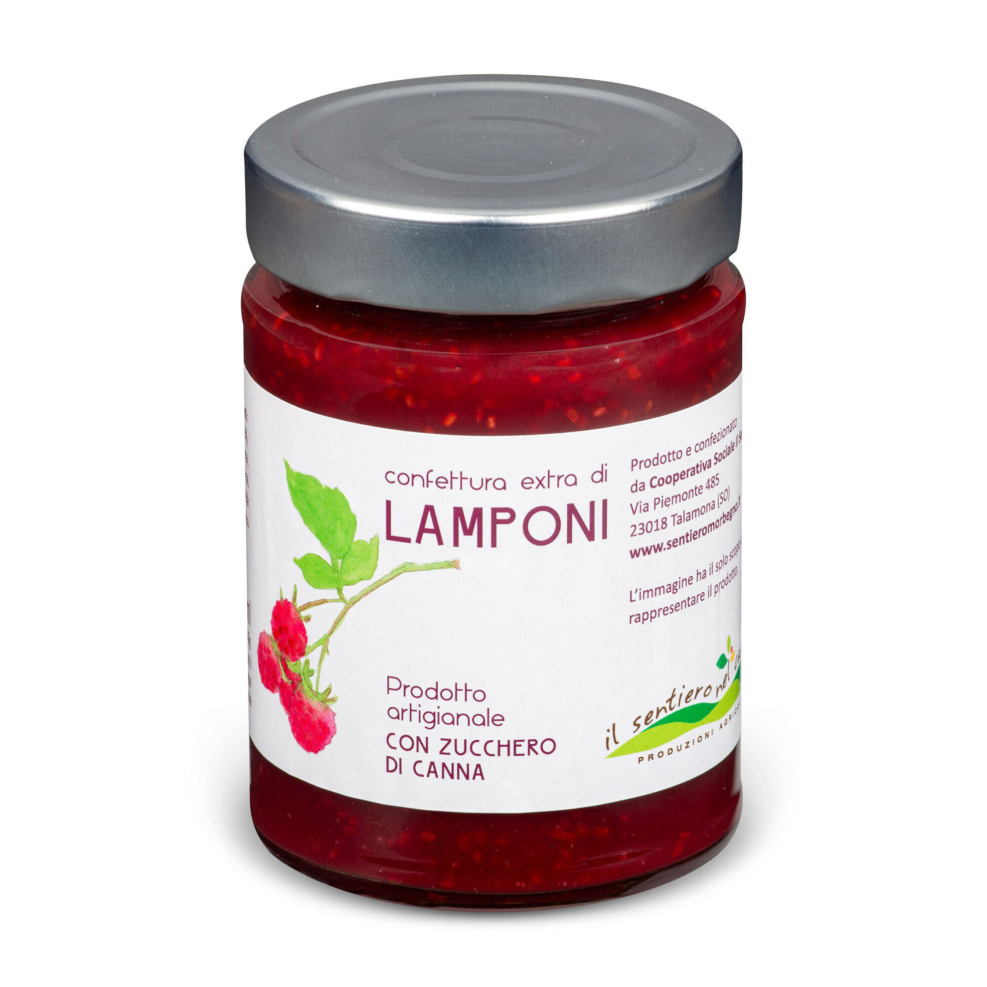 La Confettura extra di lampone della Cooperativa Sociale Il Sentiero contiene il 65% di frutta che con l'aggiunta dello zucchero di canna sprigiona tutto il suo sapore. Perfetta sul pane per una merenda sana e gustosa, ma anche al mattino per iniziare la giornata con il giusto sprint. Il lampone è infatti ricco di minerali, magnesio, potassio, fosforo e sodio, oltre a possedere tante vitamine.